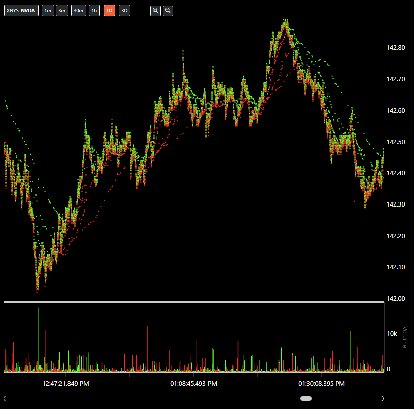Tephra currently integrates with NASDAQ’s exchanges and presents 3 days of historical data upon load.